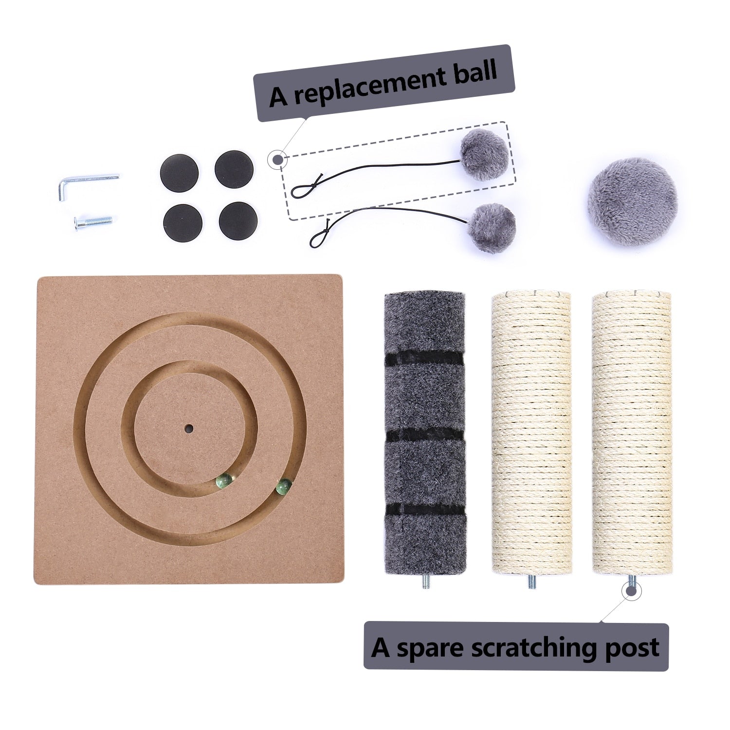 Dimensioni: Con misure di 29.5X29.5X56CM, questo tiragraffi offre ampio spazio per gatti di tutte le taglie per allungarsi, graffiare e giocare.