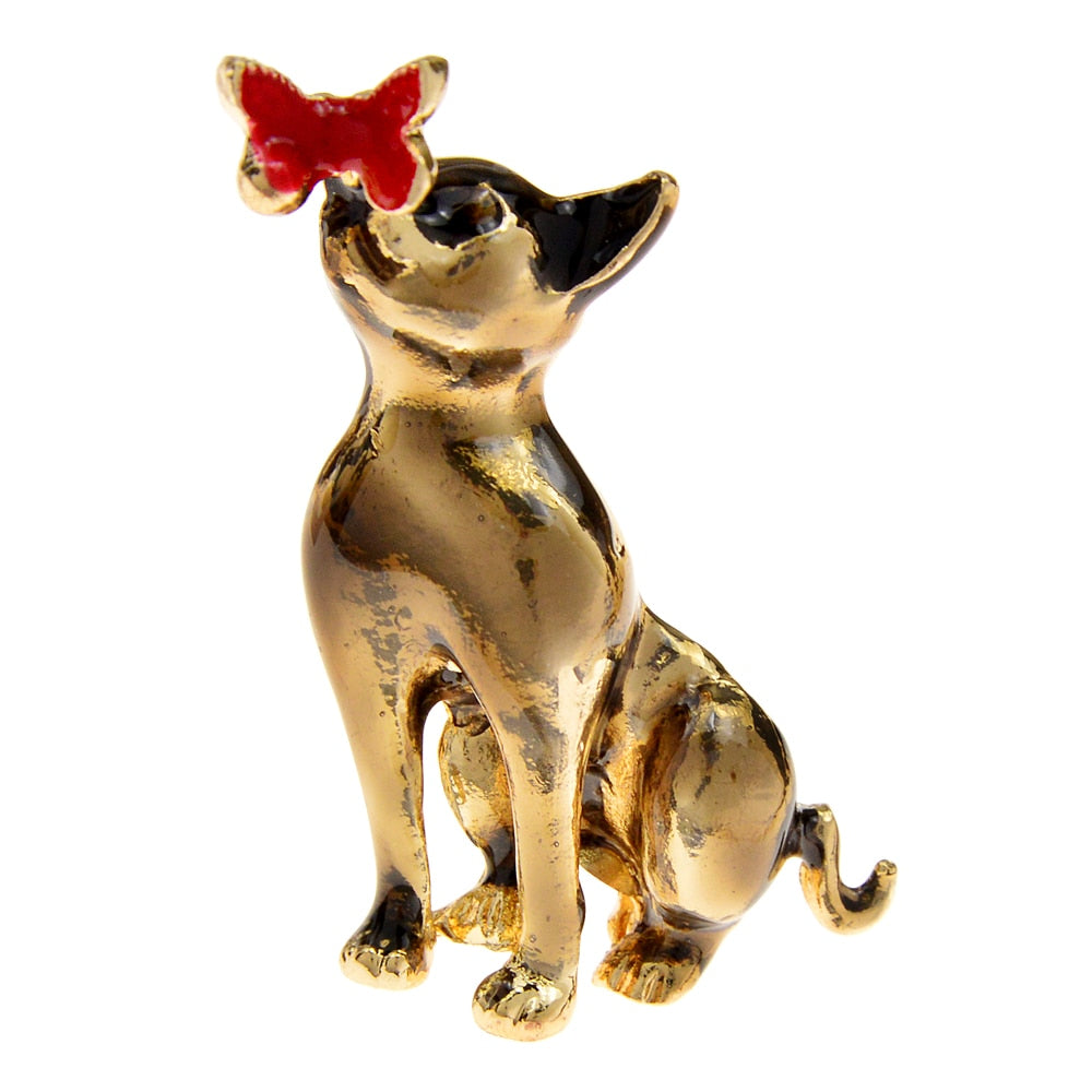 Whether you're dressing up for a special occasion or adding a touch of sophistication to your everyday outfit, the Cat and Butterfly Brooch is the ideal accessory. With a brooch pin on the reverse, it's simple to wear and can be attached to your favorite jacket, blouse, or bag.