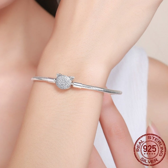 If you're a cat lover looking for the perfect accessory to showcase your feline obsession, look no further than our Cat Bangle Bracelet. This elegant piece of jewelry is expertly crafted from 925 Sterling Silver, ensuring lasting quality and shine.