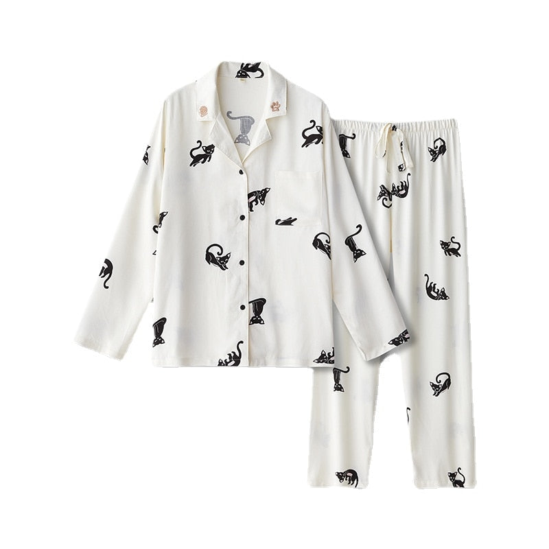 Are you tired of wearing generic and boring pajamas? Our Cat Flannel Pajamas are here to change that. With their adorable cat print pattern, these pajamas add a fun and whimsical touch to your bedtime routine. So whether you're cuddling up with your favorite cat or just relaxing on the couch, these pajamas will make you feel stylish and cozy.