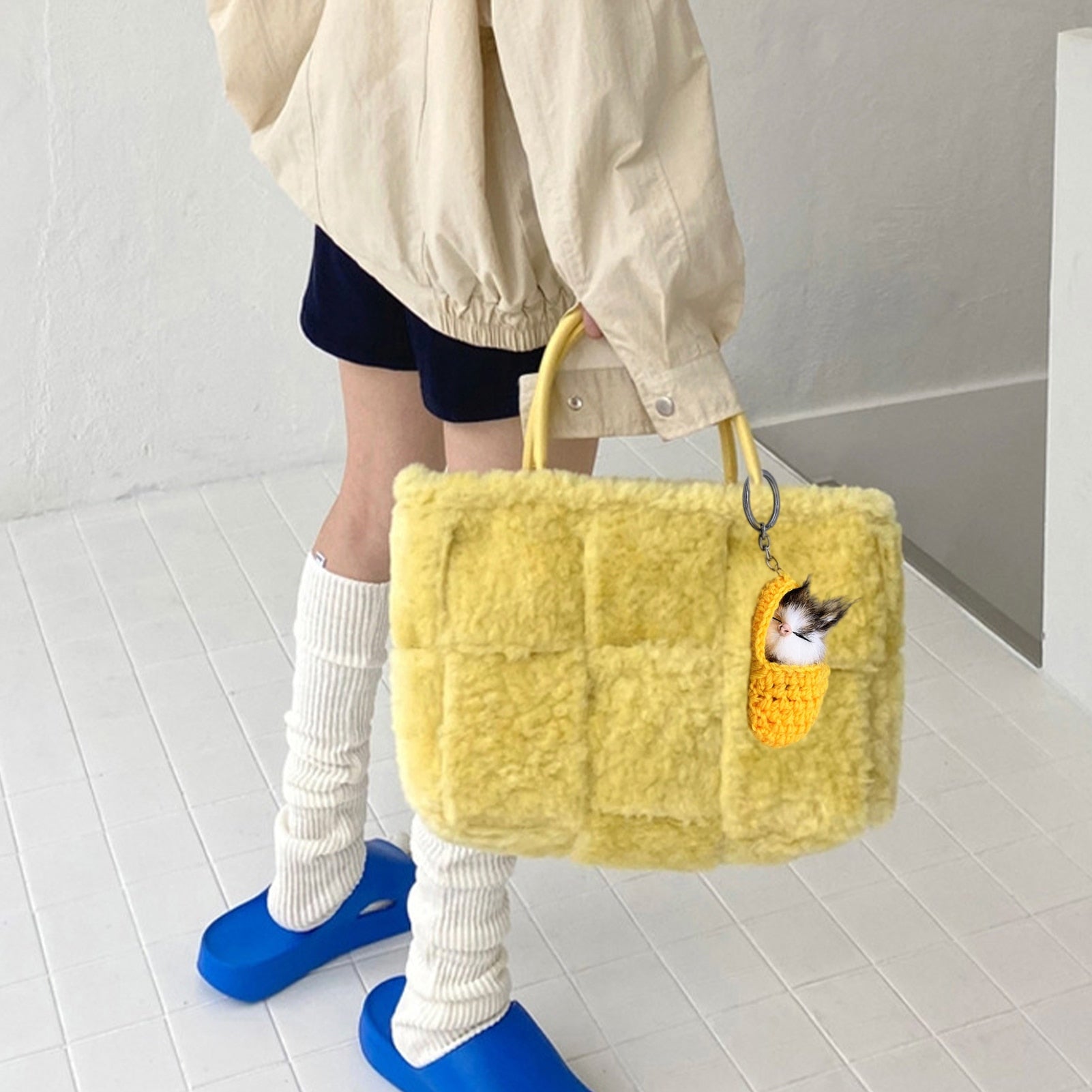 Material: Crafted from imitation fur, the Cat Keychain Crochet feels incredibly soft and plush to the touch. It is the perfect accessory to add a touch of luxury to your everyday essentials.