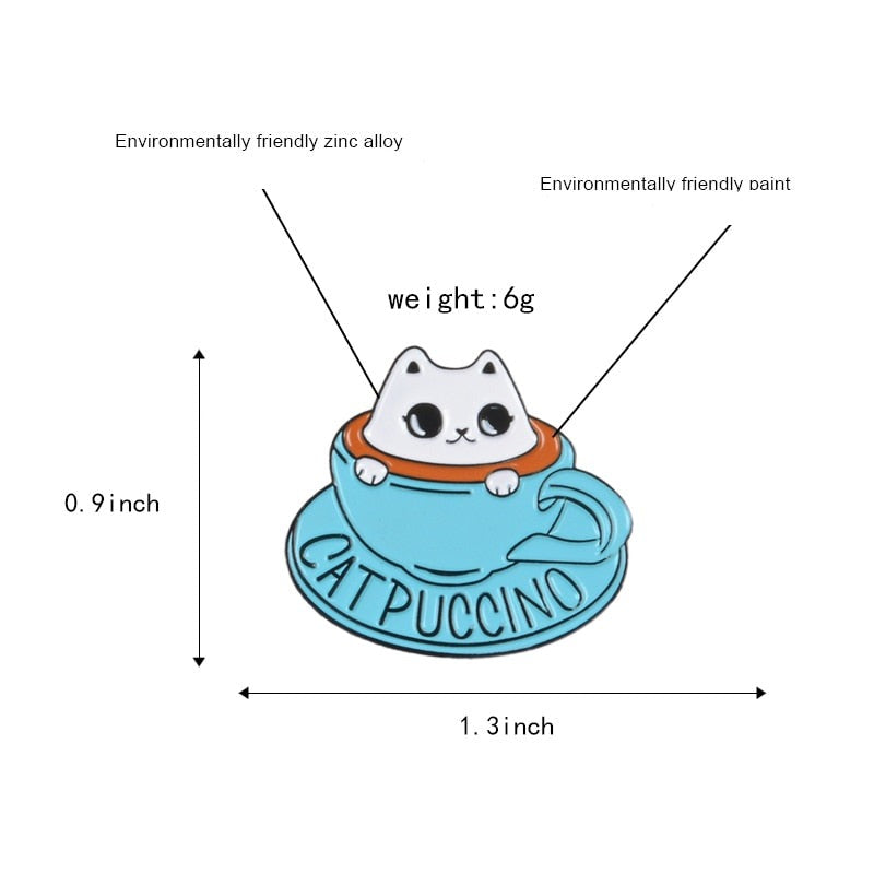 The Cat Puccino pin is more than just a cute accessory. It allows you to showcase your passion for both cats and coffee in a stylish and unique way. Whether you wear it on your clothes, bag, or even as a statement piece on your coffee mug, it's guaranteed to spark conversations and make you stand out from the crowd. As a cat lover, this pin is a must-have addition to your collection. It also makes a purrfect gift for any cat lover in your life, showing them that you understand and appreciate their love for these incredible creatures.