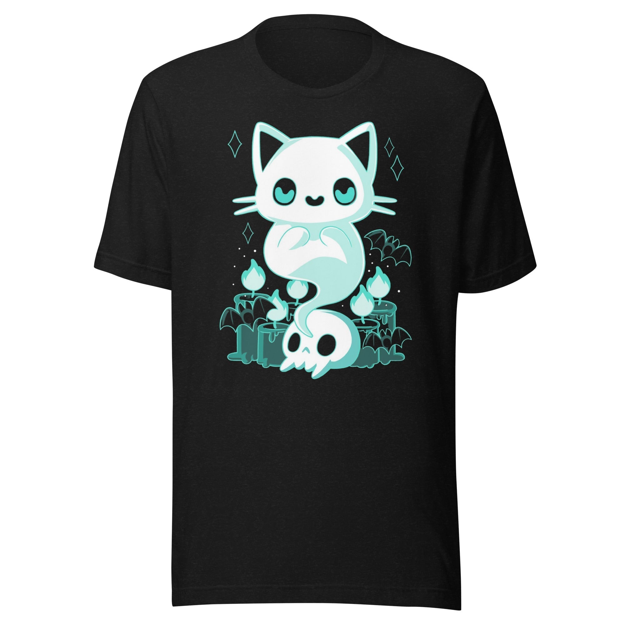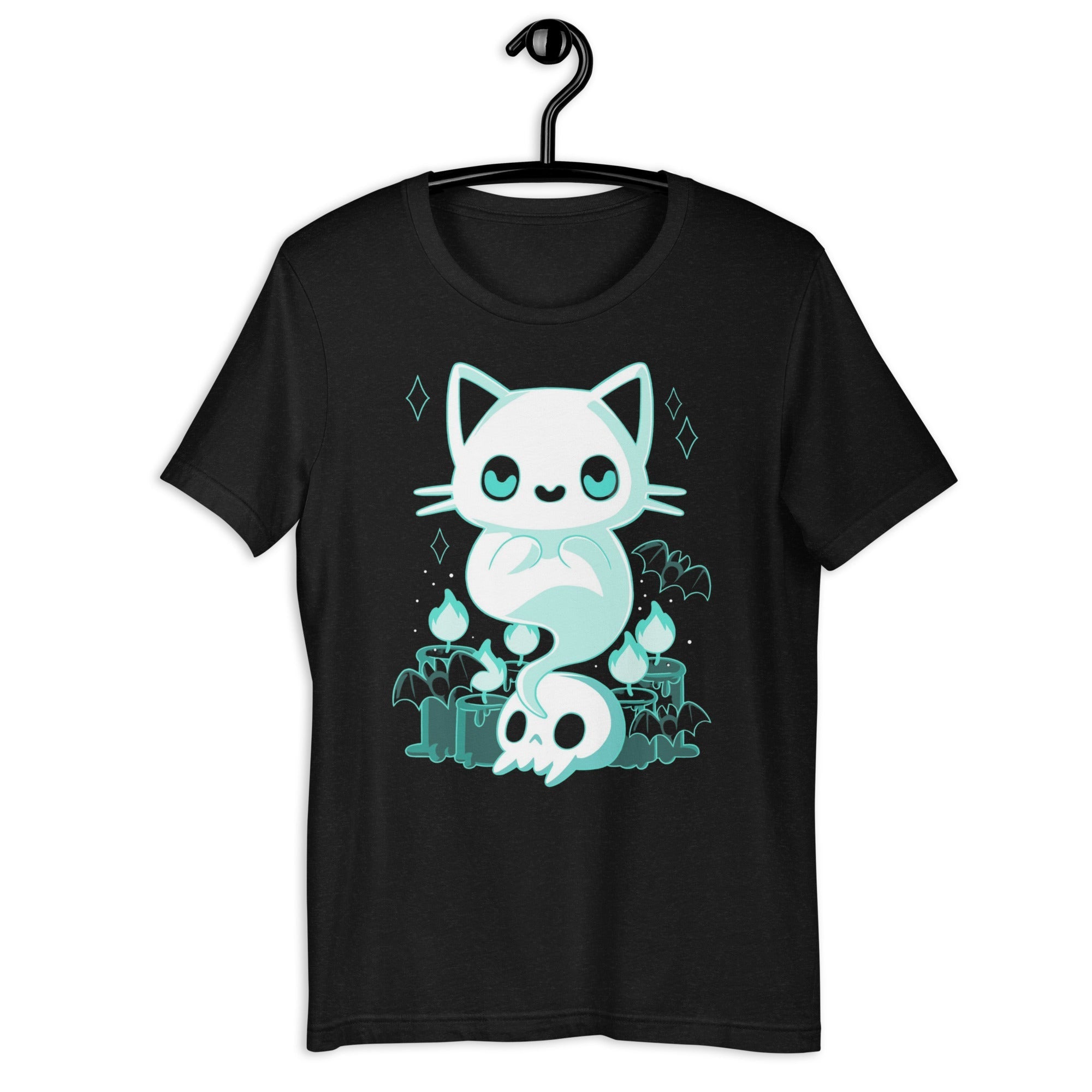 The side-seamed construction and shoulder-to-shoulder taping enhance the durability and longevity of the shirt. You can wear it day after day and it will still look as good as new. The shirt's timeless design showcases a hauntingly beautiful cat ghost, making it an ideal choice for cat lovers who want to make a statement.