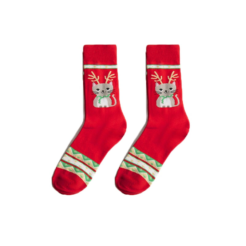 Slip into our Christmas Cat Socks and instantly elevate your holiday outfit with a touch of whimsy. These socks are not only visually appealing but also offer a range of benefits that make them a must-have for any cat enthusiast. The standard thickness ensures a comfortable fit and allows you to wear them all day without feeling constricted. The casual sock type makes them suitable for various occasions, whether you're lounging at home or going out for a festive gathering.
