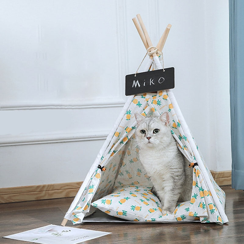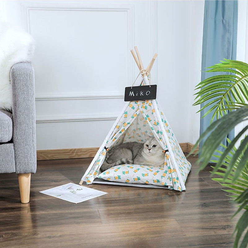 The compact size of the Cushioned Tent Cat Bed makes it suitable for small spaces, while its charming design adds a touch of whimsy to any room. Place it on the floor, a shelf, or even a countertop, and watch as your cat gravitates towards their special hideaway.