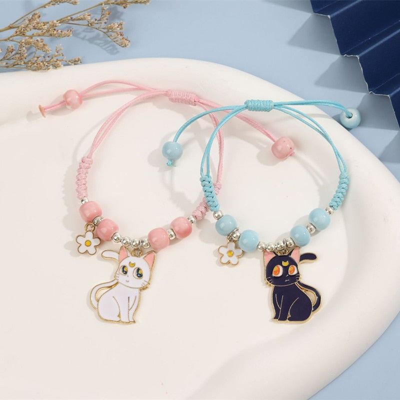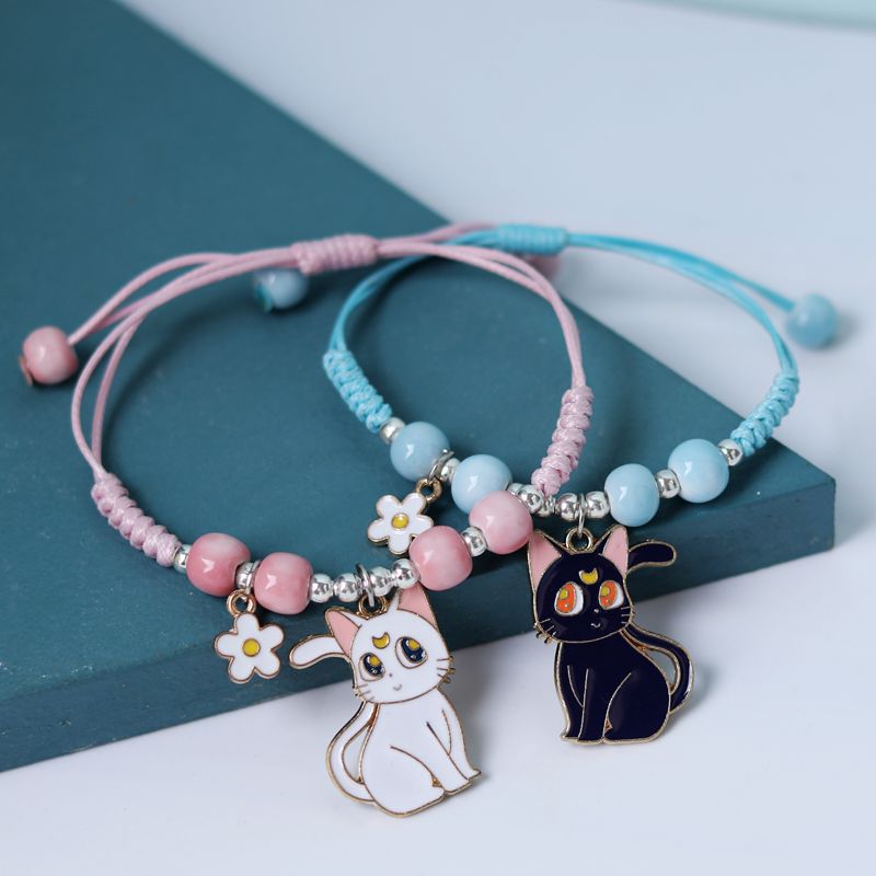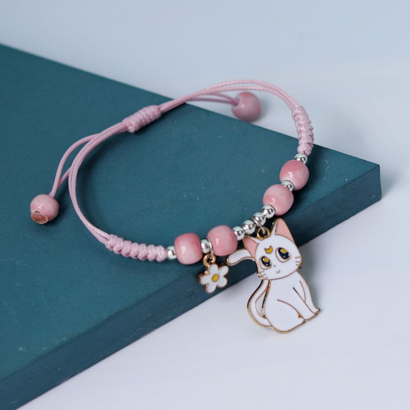 Introducing our Cute Cat Friendship Bracelet, the perfect accessory for cat lovers and feline enthusiasts! This adorable bracelet is designed with love and features an exquisite combination of zinc alloy and ceramic materials. The lace-up clasp and rope chain add a touch of elegance, making it the ideal accessory for both casual and formal occasions.