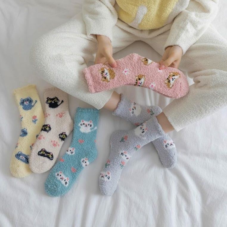 Pattern Type: Our Fluffy Cat Socks feature charming cartoon patterns, adding a playful and whimsical touch to your feet. Express your love for cats with every step you take.