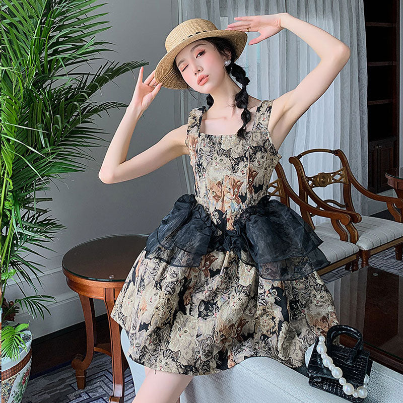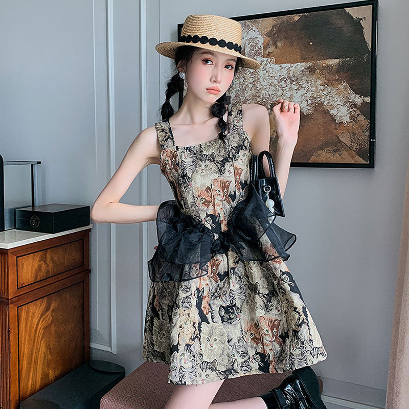 Upgrade your wardrobe with our exquisite French Cat Dress. Made from a blend of Polyester, Acetate, and Chiffon, this dress guarantees comfort and style for any occasion. With its above knee, mini length, it's cute and flirty, perfect for showcasing your love for cats.