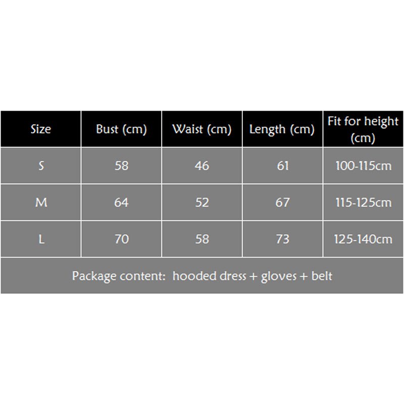Package Content: The dress comes with a hooded dress, gloves, and a belt, allowing you to create multiple looks to suit your style.