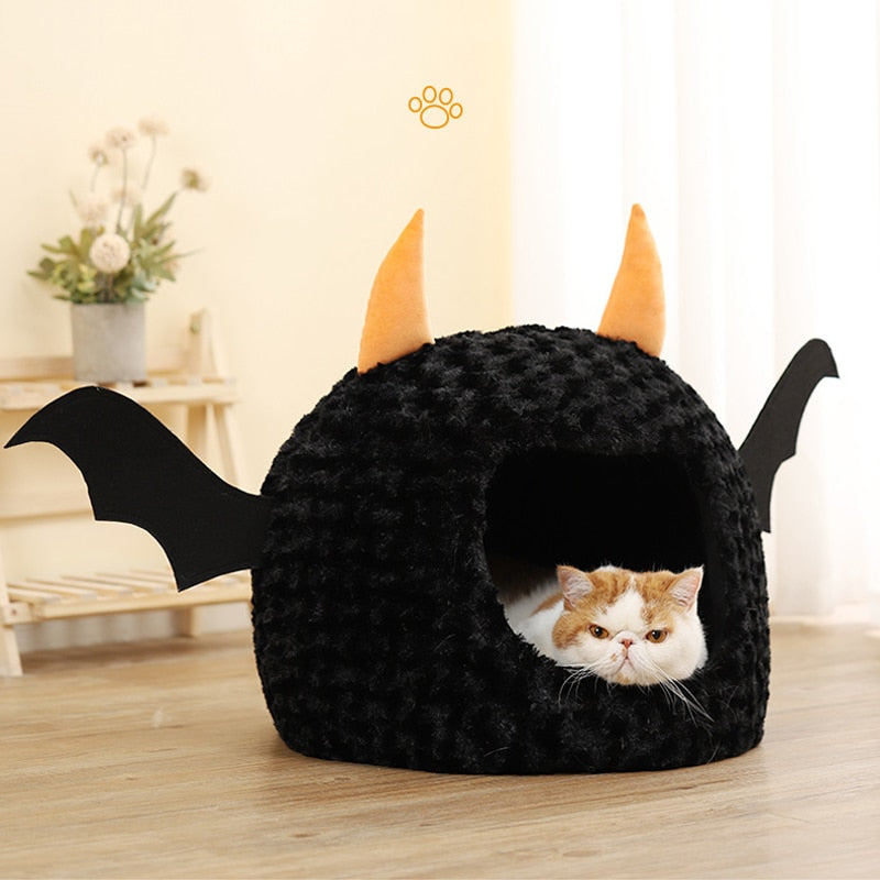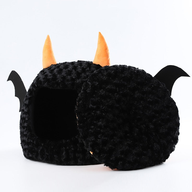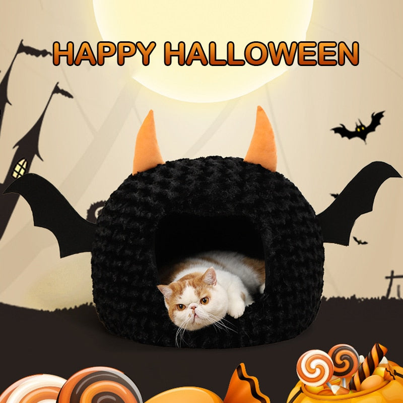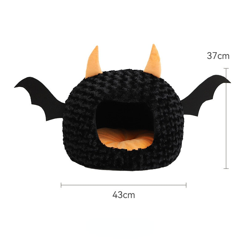 Material: Plush - Made from premium materials, the Halloween Cat Bed ensures both durability and comfort. The soft cushion inside provides a plush surface for your cat to rest, sleep, or dream of chasing ghosts and goblins. The bed's unique shape and design create a sense of security and coziness, allowing your cat to feel safe and at ease while celebrating the Halloween spirit.