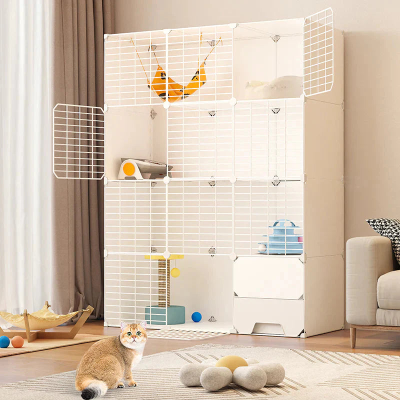 This cat cage provides a safe and spacious environment for your furry friend to play and rest. It is ideal for all breeds and sizes of cats, ensuring that every cat, from kittens to adult cats, can enjoy the comfort and convenience of the Ultimate Indoor Cat Cage with Built-In Litter Box. Give your cat the living space they deserve and upgrade their comfort today with the Ultimate Indoor Cat Cage.