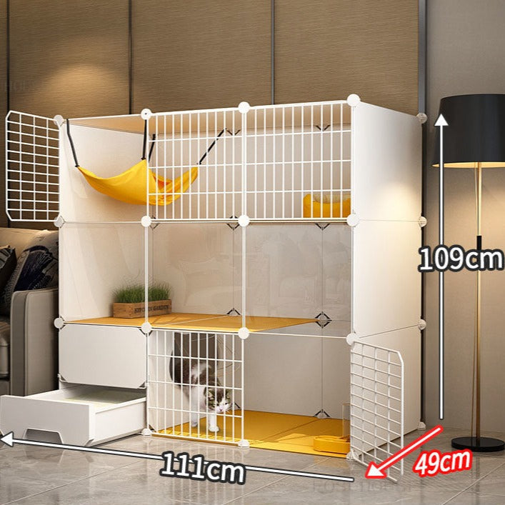 Keeping your home clean and odor-free is a priority for every pet owner. The Ultimate Indoor Cat Cage features a 49cm depth and a detachable drawer-type litter box that makes it easy for even adult cats to use. The fully enclosed design eliminates odors, ensuring a fresh and clean home. Say goodbye to the hassle of constantly cleaning up after your cat and enjoy a tidy living space with the self-contained litter box of the Ultimate Indoor Cat Cage.