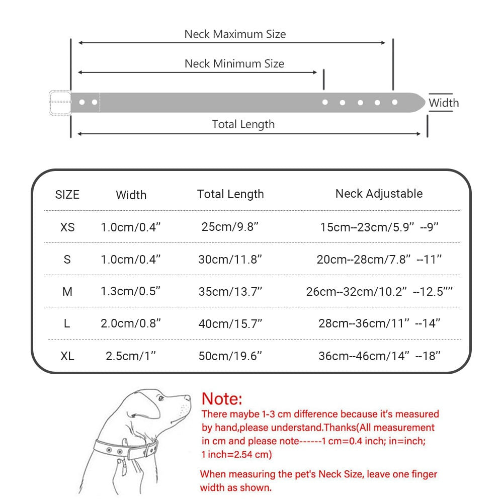 XS#: Width 0.4 inch -- Length 9.8 inch (1.0 cm -- 25 cm), Neck adjustable size: 5.9 inch -- 9 inch (15 cm -- 23 cm)