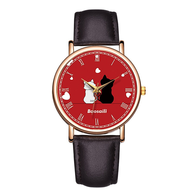 Introducing the Purr-fectly Chic Leather Cat Watch, designed exclusively for cat lovers like you. Made with love and precision, this elegant timepiece combines style, comfort, and unbeatable functionality. Whether you're attending a formal event or enjoying a casual day with your furry friend, this watch is the ideal accessory to showcase your love for cats 🐱