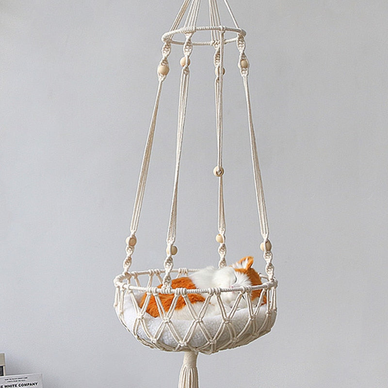 Cleaning and maintenance are simple with the Macrame Cat Bed. The removable cushion allows for easy washing, ensuring a clean and fresh bed for your cat. The macrame design can be easily spot cleaned to maintain its pristine appearance. It's a bed that offers both comfort and practicality.