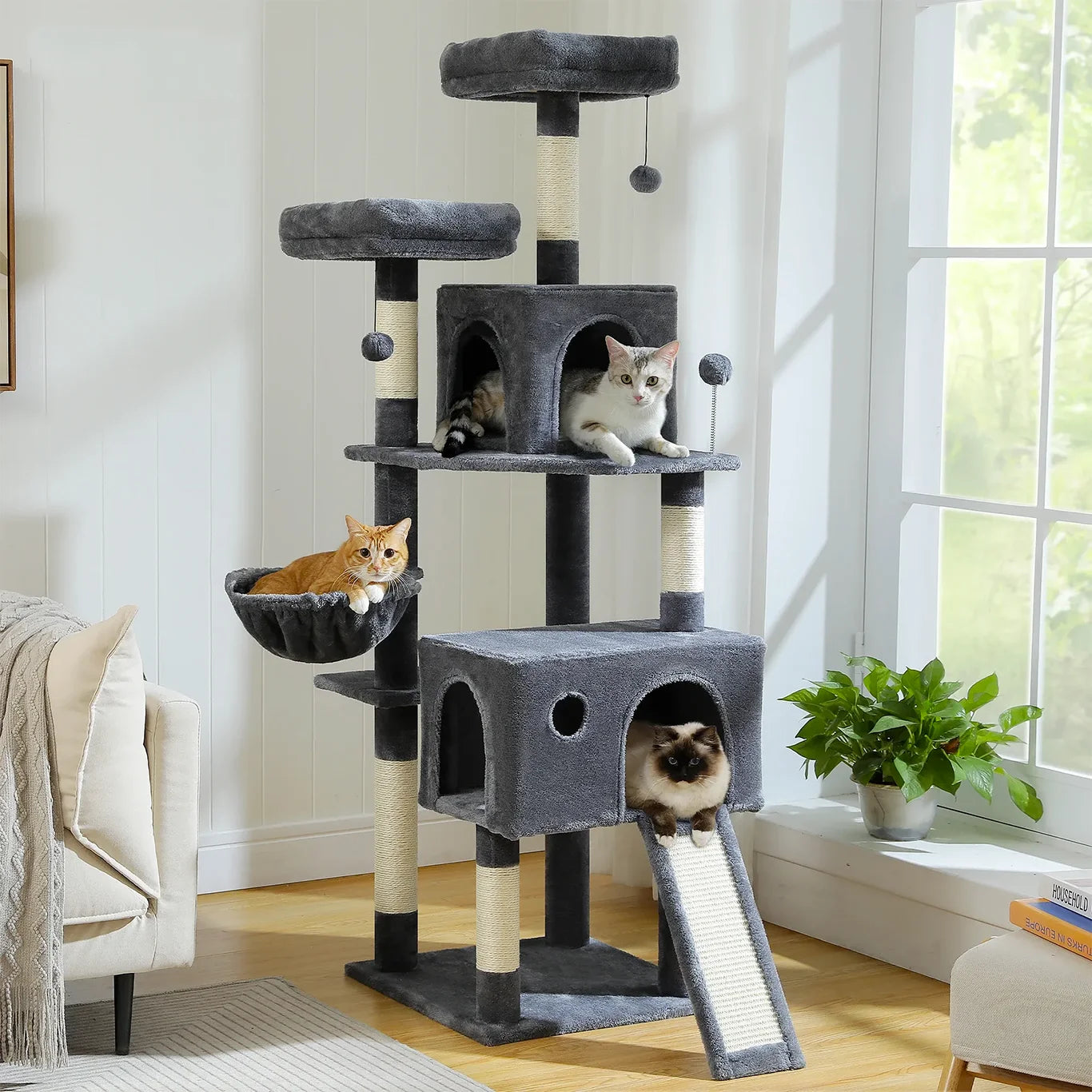- 😺 Multi-livello per più gatti → ideale per 2–4 gatti con piattaforme, casette e spazi per tutti.