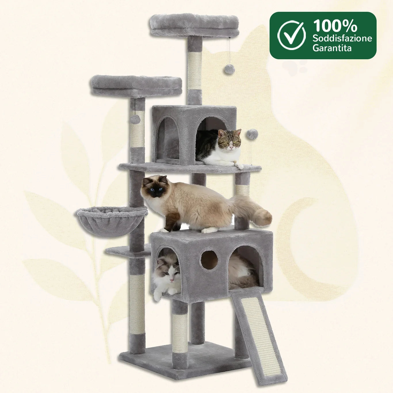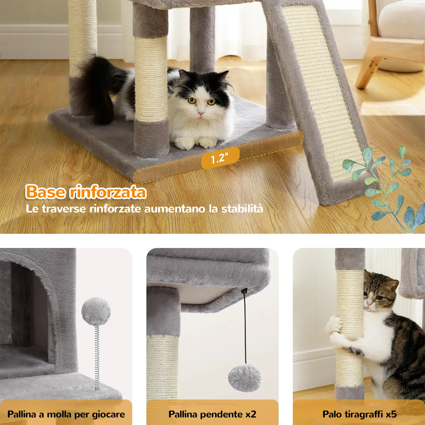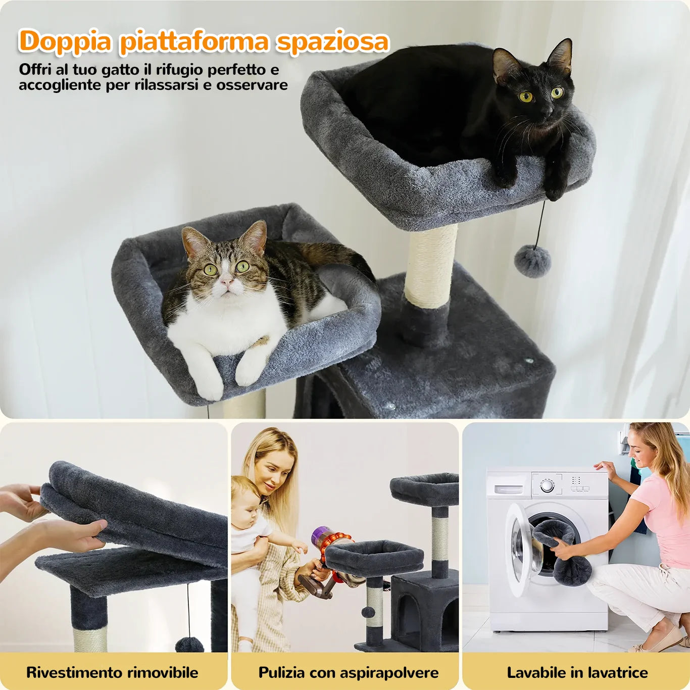 Un vero centro giochi completo che combina comfort, stabilità e design elegante. Perfetto per 2–4 gatti che vivono insieme!