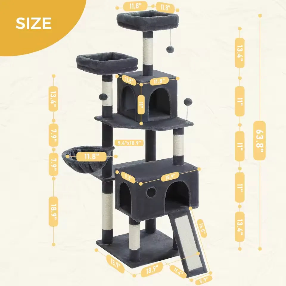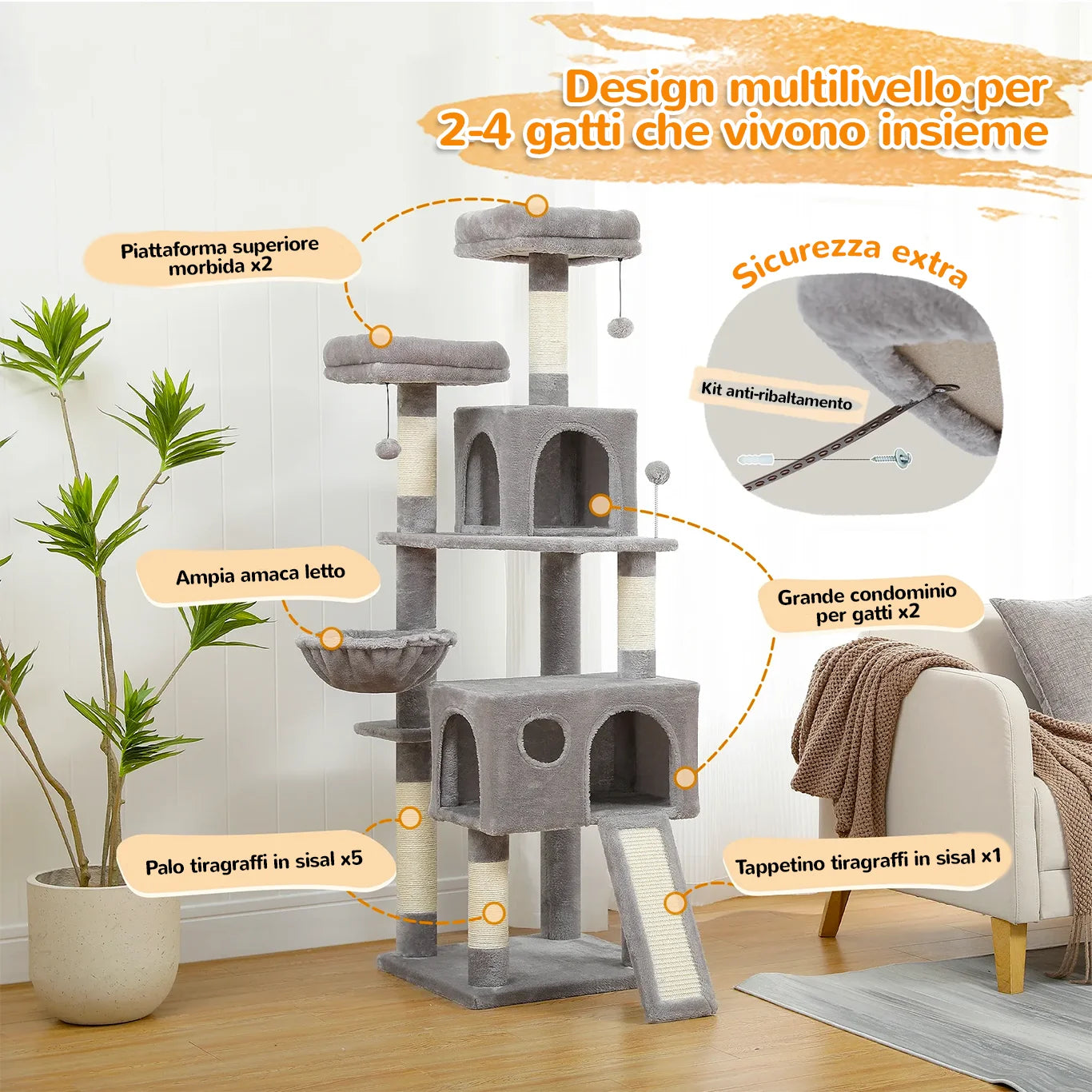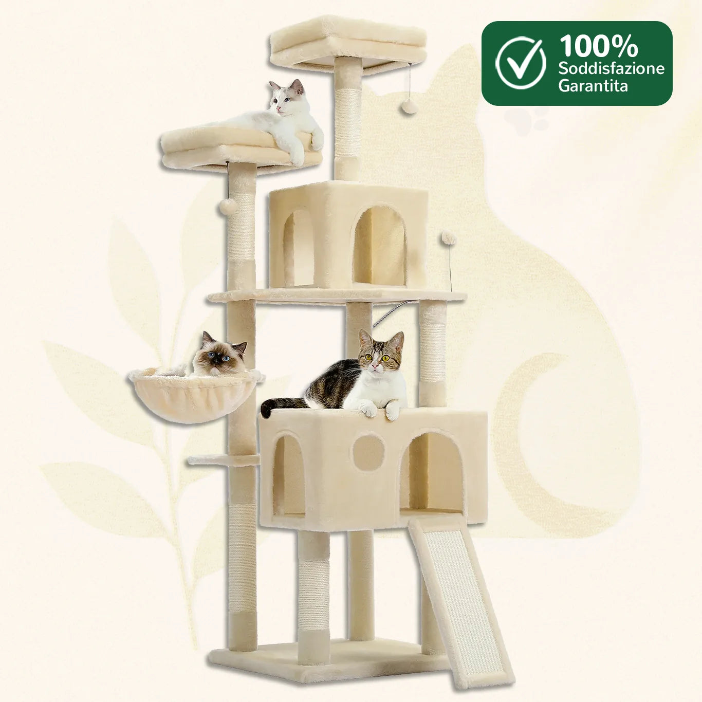 Un vero centro giochi completo che combina comfort, stabilità e design elegante. Perfetto per 2–4 gatti che vivono insieme!