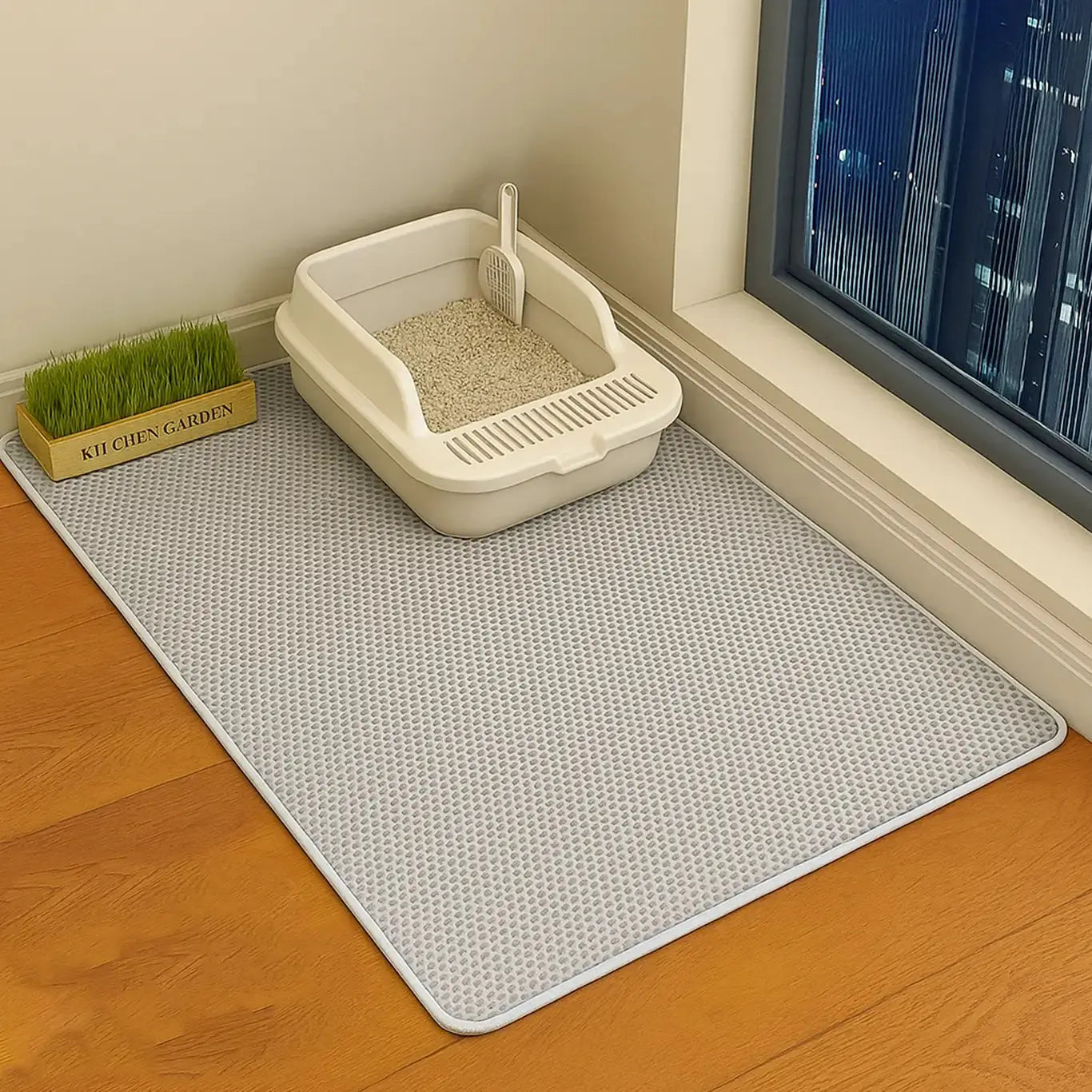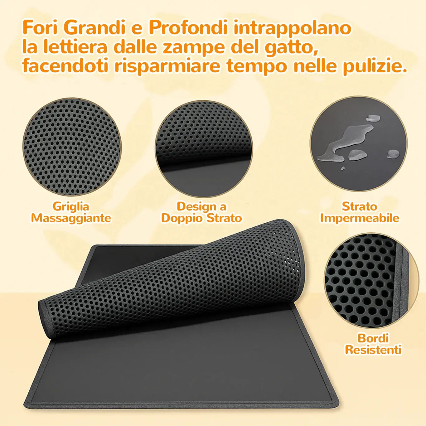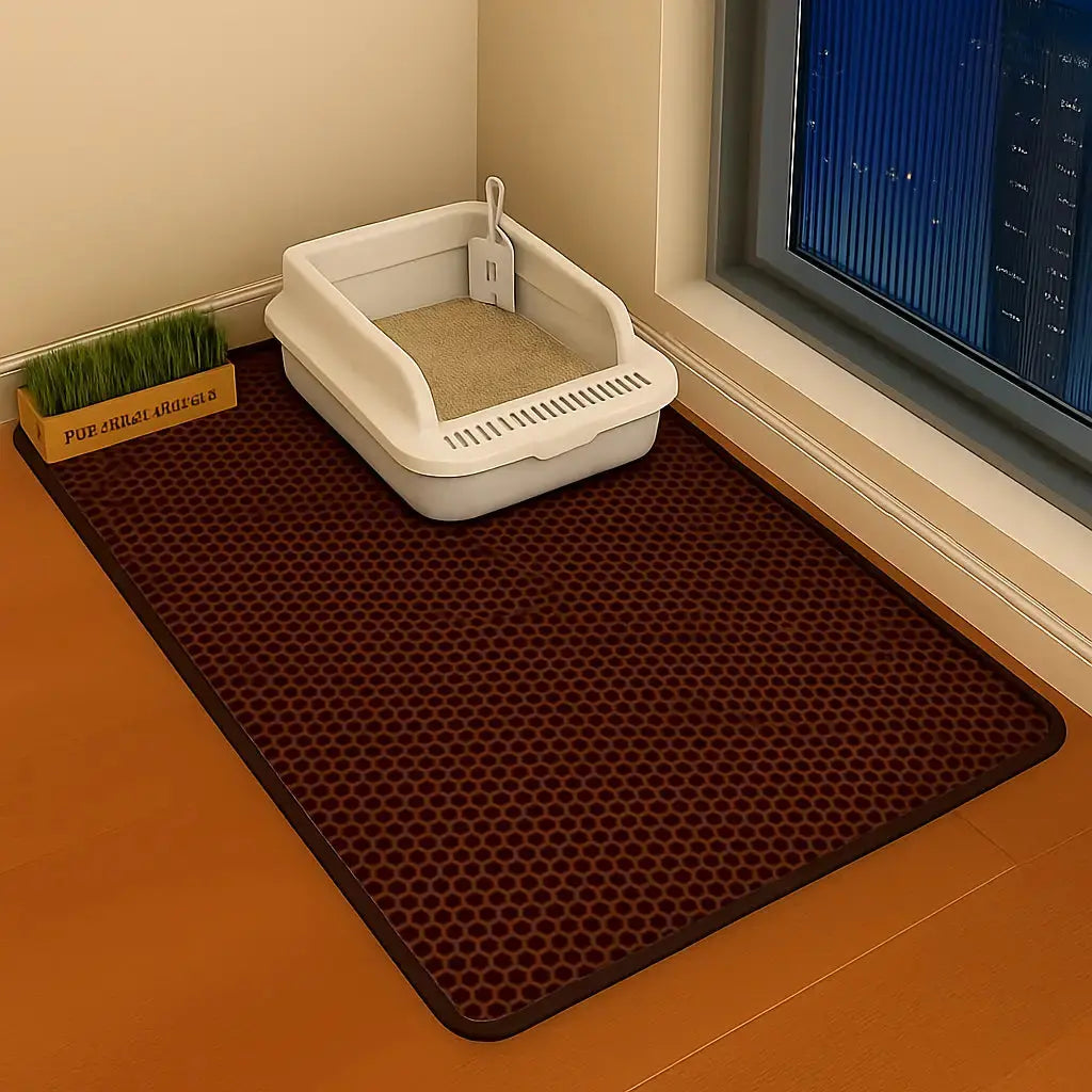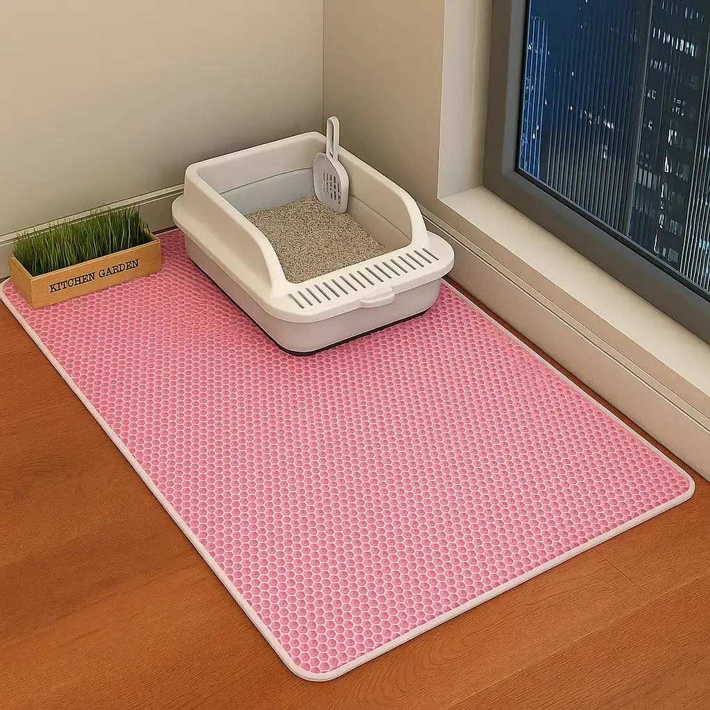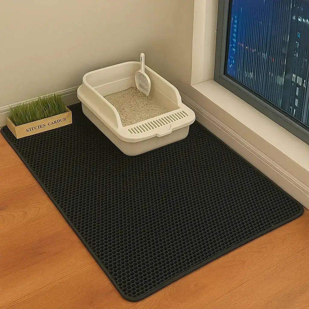 È progettato per rimanere stabile ✨: niente più tappetini che si muovono o da riaggiustare ogni giorno. Una volta posizionato davanti alla lettiera, resta al suo posto.
