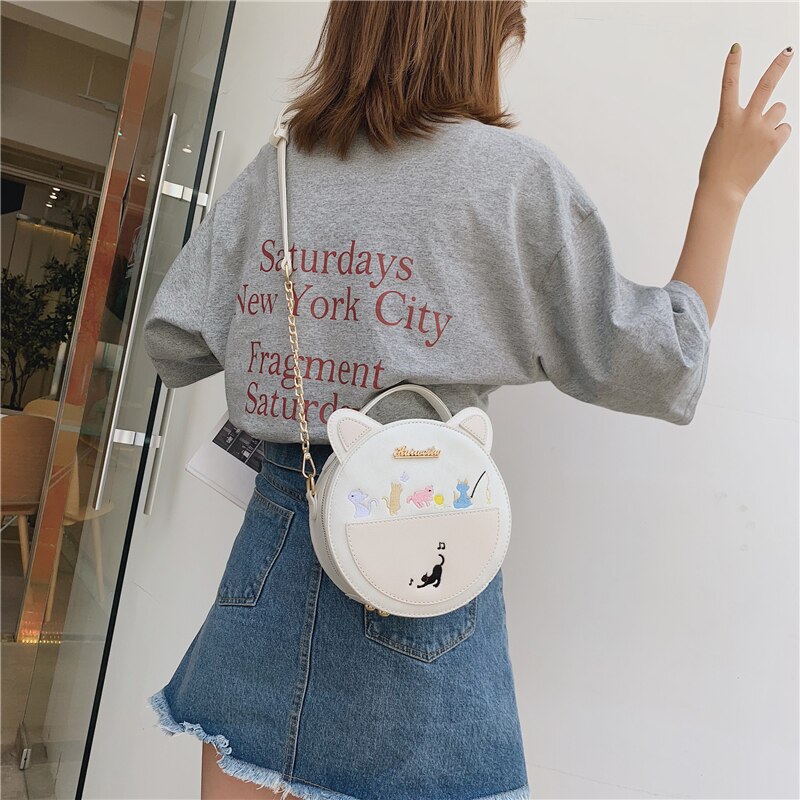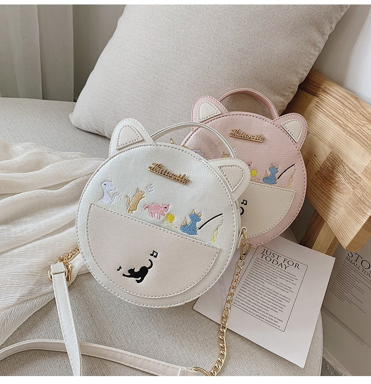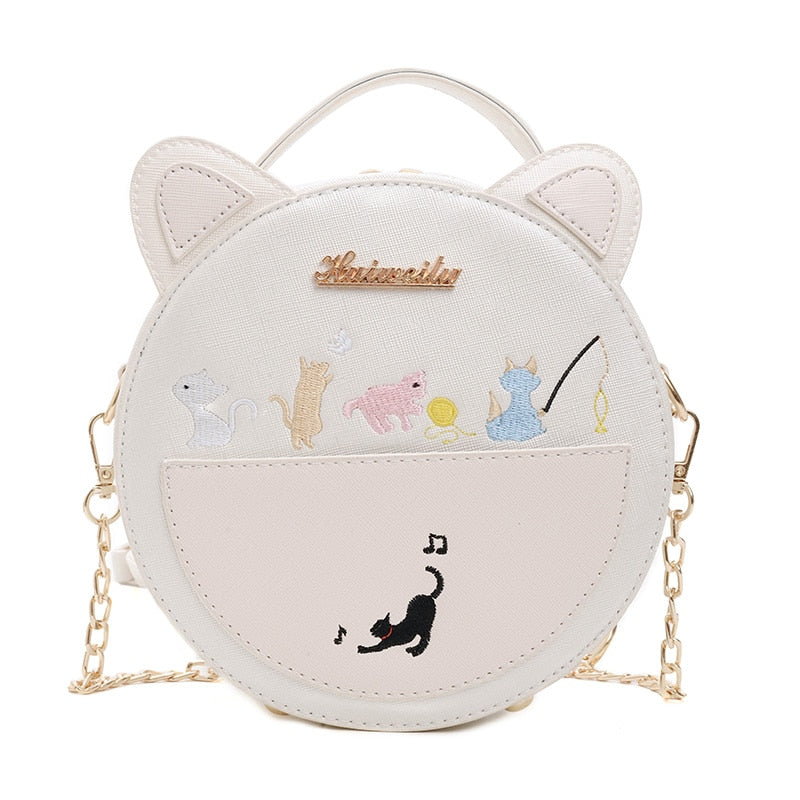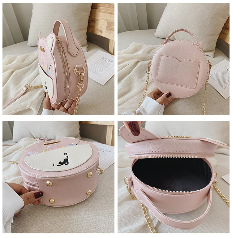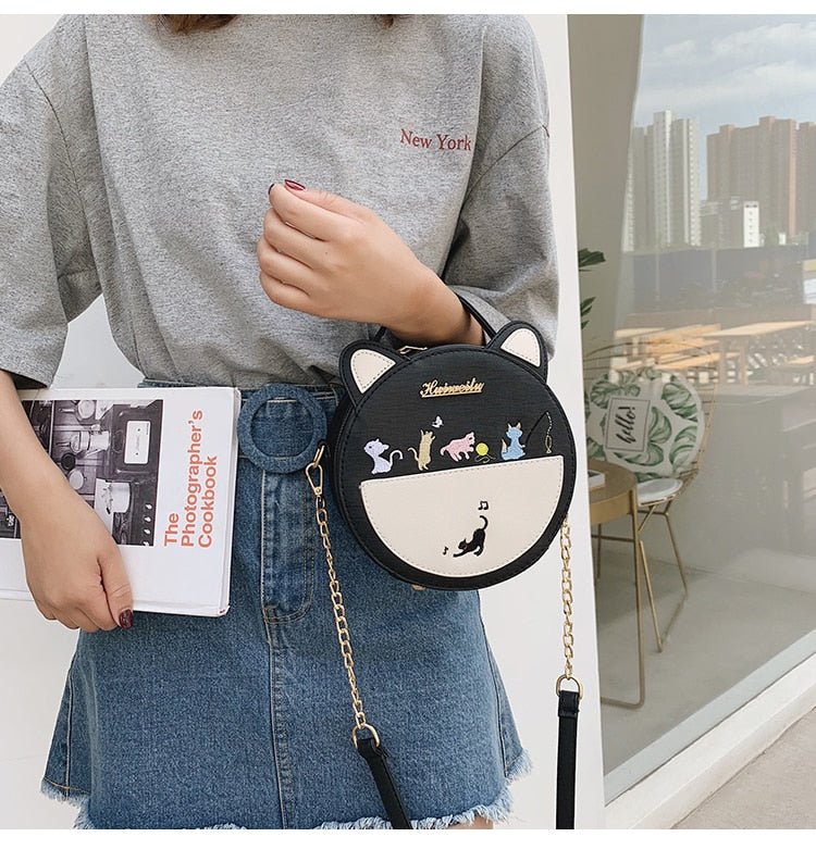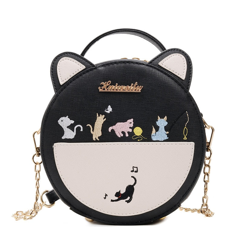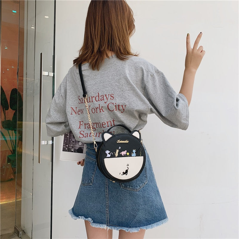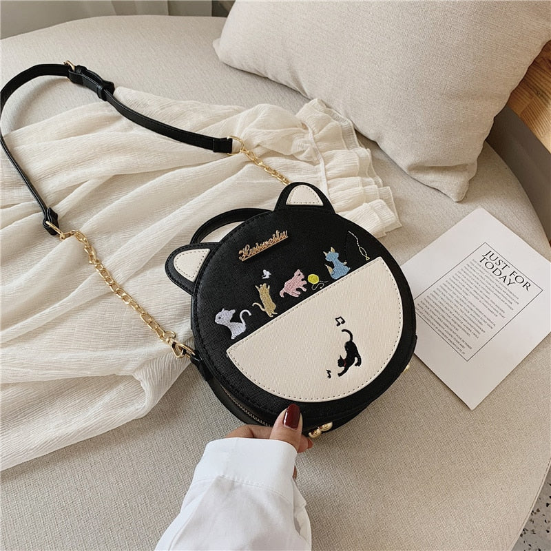 Size: 19x8x19 CM - The perfect size to carry your essentials, the Round Cat Handbag is compact yet spacious enough to fit all your necessities.
