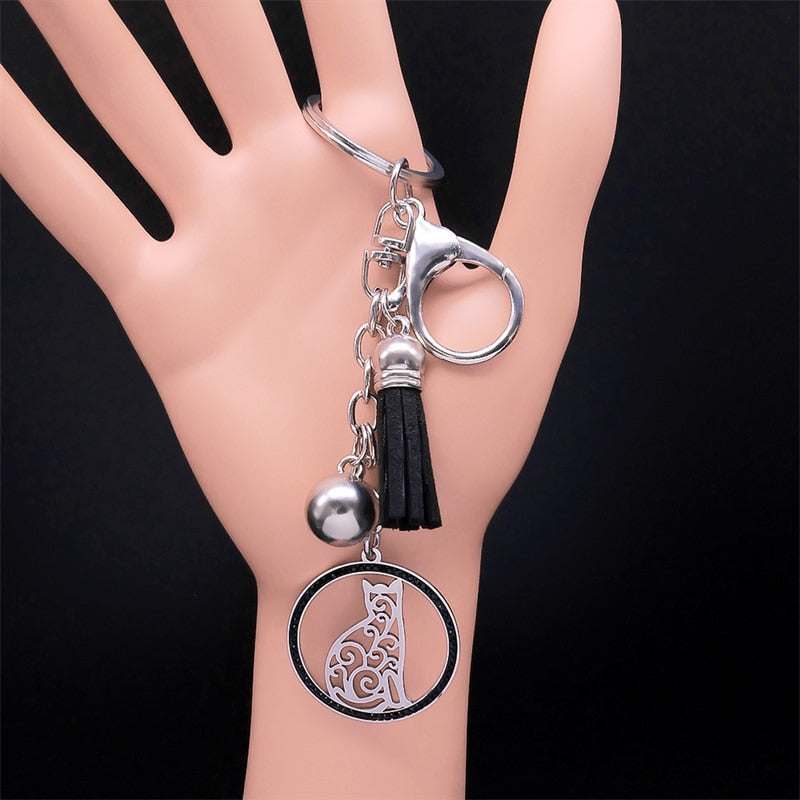 Features of Silver Abstract Cat Keychain based on Product Content: