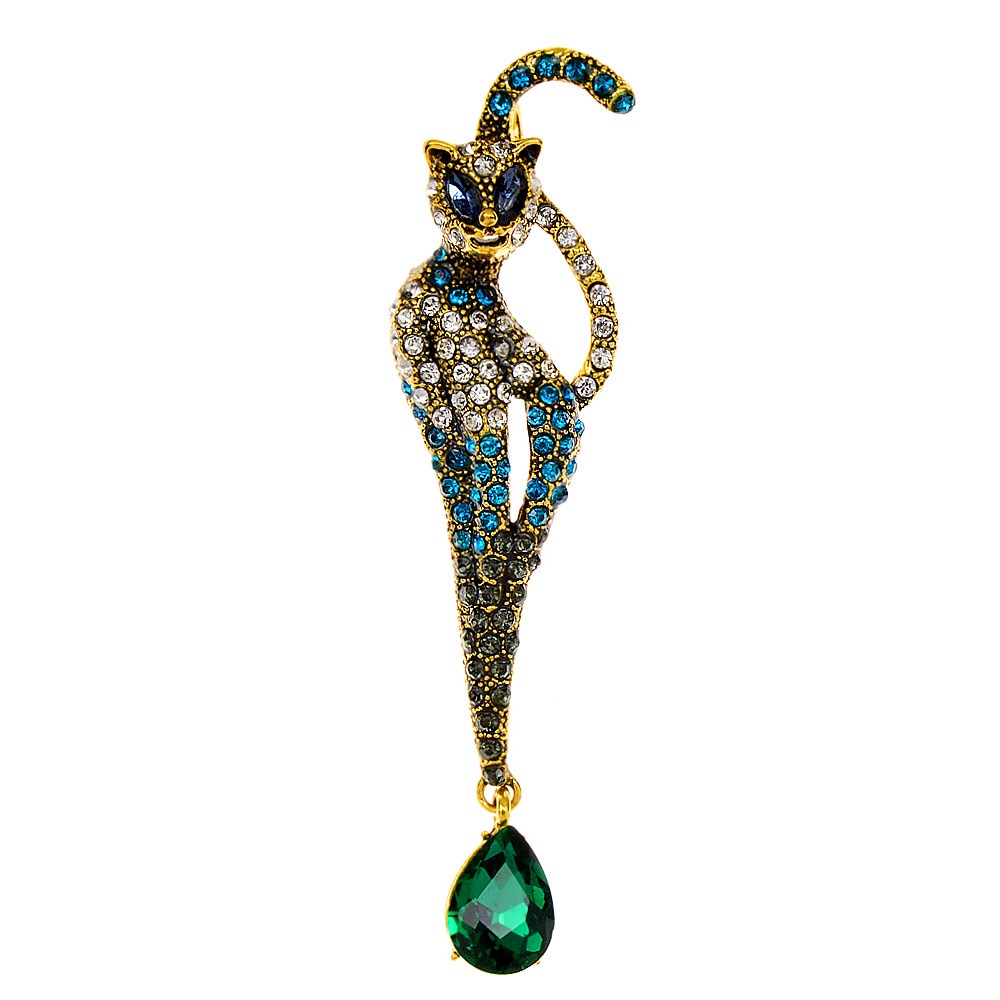 Add a touch of vintage glam to your wardrobe with the Vintage Rhinestone Cat Brooch